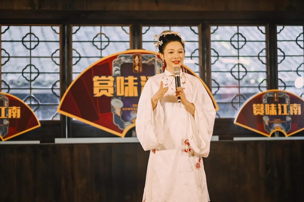 在五芳齋2020中秋新品沉浸私享會暨云直播會的現(xiàn)場,大紅燈籠春風蕩,小橋流水棲鴦,緩緩流淌的江南絲竹樂,一舞飛天攬月裙裾飄飛拉開了本次活動序幕。現(xiàn)場不僅為全國所有伙伴直播帶來五芳齋2020中秋新品系列首秀,更是邀請到古色古香的漢服秀表演,與五芳齋2020中秋季新品完美融合,全場嘉賓沉浸在江南水鄉(xiāng)溫柔光景之中,一場無與倫比的盛宴就此展開。
