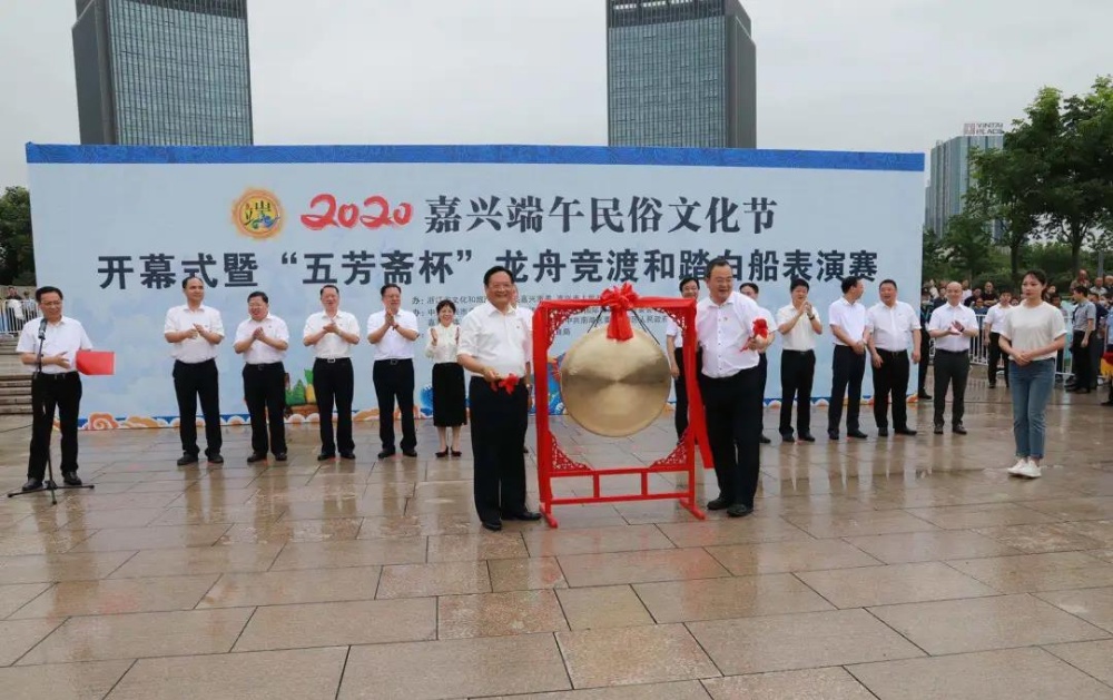 省文化和旅游廳黨組書記、廳長(zhǎng)褚子育,市委書記張兵共同為2020嘉興端午民俗文化節(jié)鳴鑼開(kāi)幕。