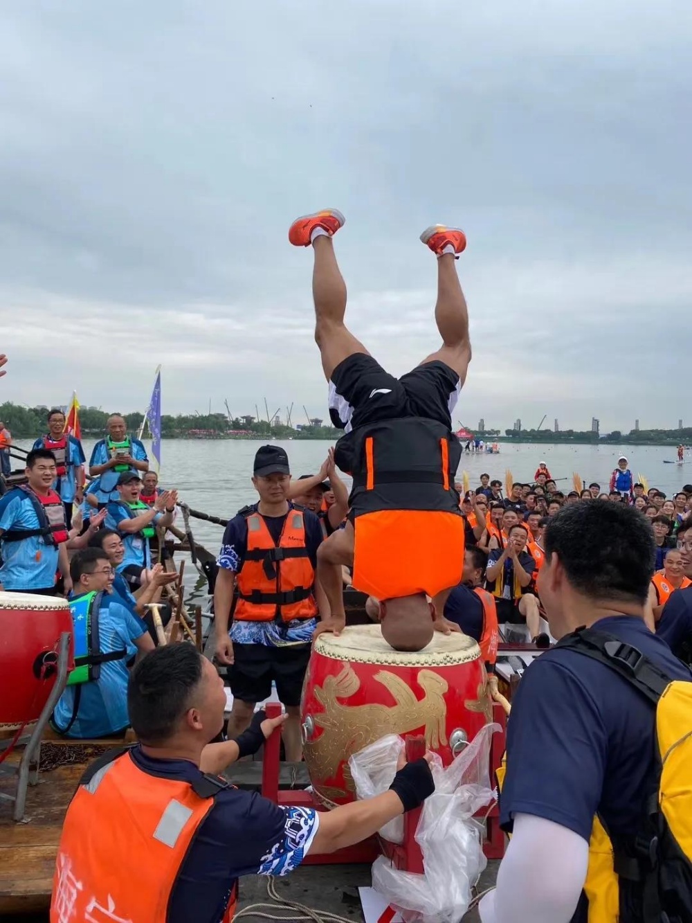 一聲令下,比賽正式開(kāi)始!只聞得鼓聲陣陣,百舸爭(zhēng)流水花飛濺。湖中龍舟競(jìng)渡、熱火朝天,隊(duì)員們同舟共濟(jì)、躍浪爭(zhēng)先。