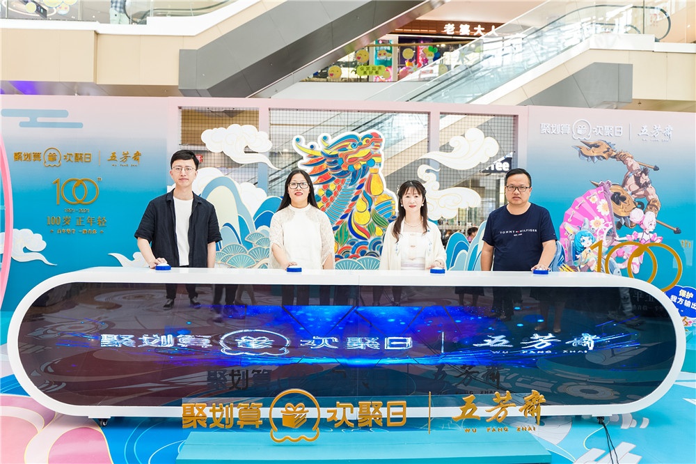 隨后,他們共同點亮五芳齋百年新紀元,并邀請現場觀眾參與,親切互動展現品牌親和力。