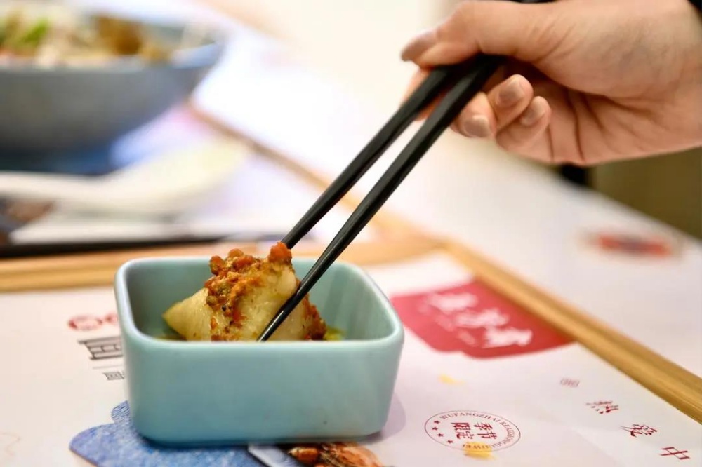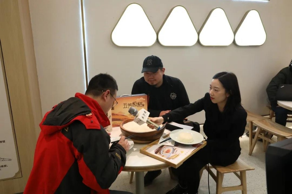 作為活動當天的另一項議程,正值五芳齋稻花香大米豐收上市季,活動中向到場的各位嘉賓展示介紹五芳齋稻花香大米生長環境以及如何鑒別挑選好大米,現場更是邀請到五芳齋粉絲參與其中,現場搭配五芳齋招牌梅菜肉和五芳齋中華節令美食體驗店特有菜品咸蛋黃獅子頭鹵肉來品嘗,梅菜肉醇香不膩、咸蛋黃獅子頭鹵肉唇齒留香,配上潔白油亮的新米米飯,更能體會到其清香黏糯的口感,讓到場嘉賓可以從色、香、味等全方面體驗稻花香大米的馥郁美味。