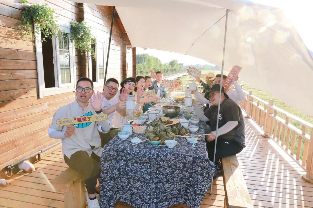 斗蛋游戲后,三個小分隊依照任務卡分工協(xié)作。徐煒總帶隊野米飯小組采集豌豆、煮制野米飯,團隊在討論中更深入地了解野米飯制作流程及選材配比;BBQ小組在科普各地燒烤特色之余不忘創(chuàng)新烤制五芳齋啊嗚一口粽。釣龍蝦小組,讓大家瞬間重拾童年記憶。立夏美食宴會環(huán)節(jié),大家品嘗了五芳齋首席節(jié)令美食官林述巍開發(fā)的立夏新菜品——什菌豆腐手剝筍,文火慢燉,鮮香味美,虜獲大眾芳心。