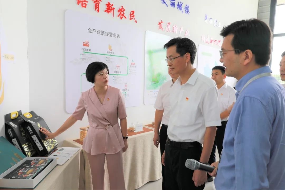 集團總經理郭騰輝帶領嘉賓們一邊參觀稻種加工車間,一邊詳細介紹禾天下公司目前的運營狀況。陳書記仔細聽取了禾天下主力產品“中寶嘉糯”、“嘉禾糯1號”等產品的選育、栽培和存儲加工等,并饒有興趣地咨詢種植面積和產量,雜交稻與晚稻對種植農戶的吸引力等問題。陳偉書記強調:種子是農業的“芯片”,對于農業現代化發揮著基礎作用,他對禾天下用創新驅動農業發展表示肯定。陳偉書記還提到曾到訪過的雜交稻之父——袁隆平院士的育種基地,鼓勵禾天下公司繼續加大研發力度,瞄準行業龍頭做大做強種子種業,開發出嘉興優質好米,為保障糧食安全做出貢獻。