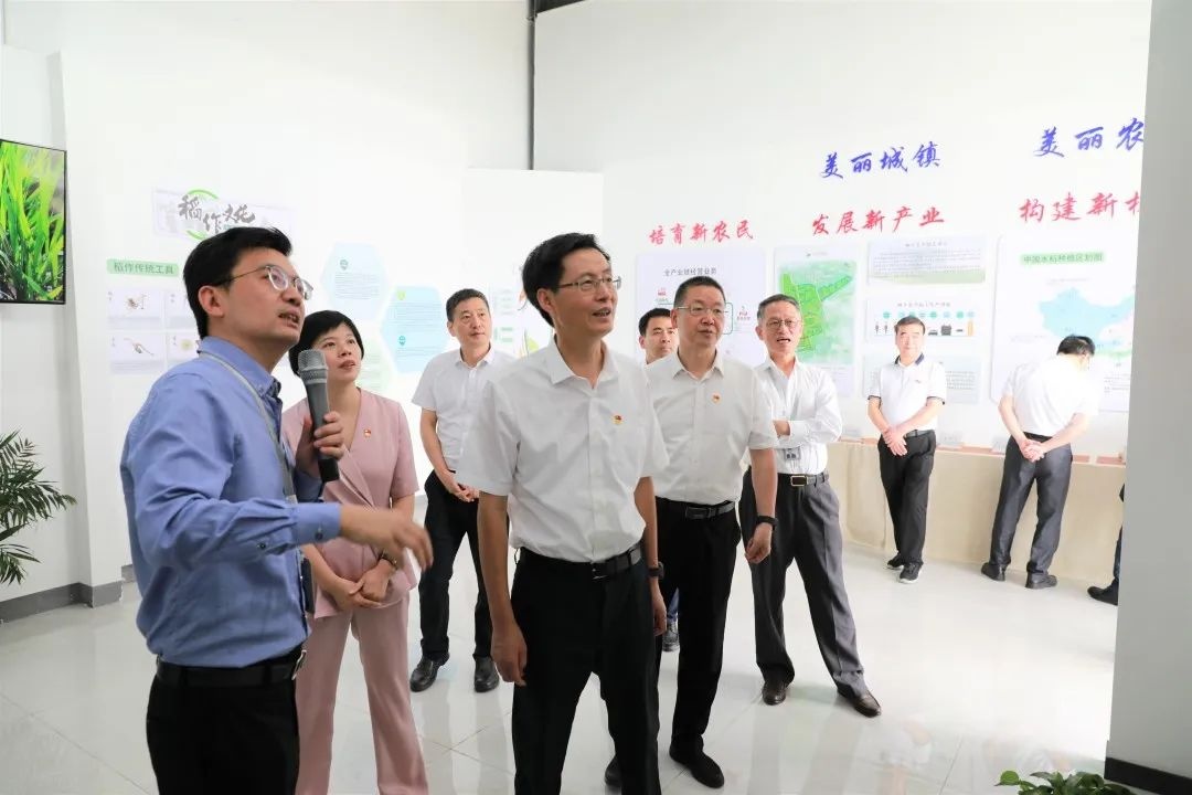 秋分時節,晴空萬里,在浙江禾天下種業股份有限公司基地內,插秧機、收割機、農藥噴灑無人機在習習秋風中整齊列隊,等待貴賓們的檢閱。上午,嘉興市委書記陳偉、副市長王慧琳等一行領導蒞臨禾天下公司走訪調研。