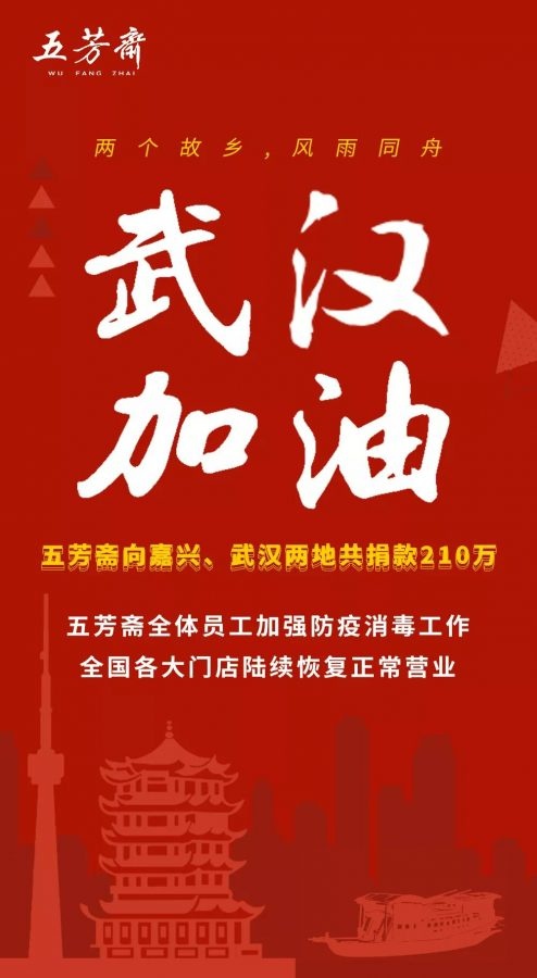 與你同在,五芳齋疫情預防措施全面升級! 2020-02-03 00:00:00 浙江五芳齋實業股份有限公司 瀏覽次數 21356 攜手同心,同舟共濟!齊心協力,共克時艱!五芳齋,一直都在你身邊!1月21日,我們第一時間啟動防控預案,率先下發了《關于門店做好防范新型病毒工作的通知》,要求門店做好員工培訓工作,重視疫情發展現狀,嚴格執行消毒操作,全面抓好各項防控措施。掌握員工尤其是湖北員工的身體狀況,建立好相關聯絡機制,做到密切關注、及時上報。與此同時,我們也緊急采取行動,為了讓全國所有五芳齋門店的消費者可以安心到店消費,也為了每一位五芳齋員工有安全健康的工作環境,我們對五芳齋各門店進行了門店預防措施全新升級! 門店:全面消毒 防護升級五芳齋各門店店內消毒全面升級,定期對店內所有公共接觸面進行消毒:包括收銀臺、出餐臺、桌椅、門把手、地面、洗手間等。 員工:上崗前測量體溫五芳齋所有門店員工上崗前均進行體溫測量和記錄,如有異常或有發燒或感冒癥狀,立即暫停服務就醫。勤洗手 勤消毒各門店均配備消毒洗手液,五芳齋的各位員工每隔30分鐘進行洗手和消毒。隔離病毒,不隔離愛除了做好門店、員工的防護措施,五芳齋還通過各種渠道為抗擊疫情一線人員提供支援,在嘉興、上海、杭州、武漢等地,通過向一線醫護人員、隔離人員提供餐食等舉措,幫助他們共同抗擊疫情。現在正是疫情防控的重要時刻。五芳齋在此呼吁:當您進入公共場所時,戴口罩、勤洗手、少出門,少一次聚會,多一分安全。重視防護,共克時艱!艱難時刻,我們在一起!2020年2月3日起,五芳齋全國門店陸續恢復營業,五芳齋持續關注疫情,武漢加油!中國加油! 上一條生命重于泰山、疫情就是命令、防控就是責任 下一條中秋公益行?美味暖人心——五芳齋幸福傳遞助學活動圓滿成功!